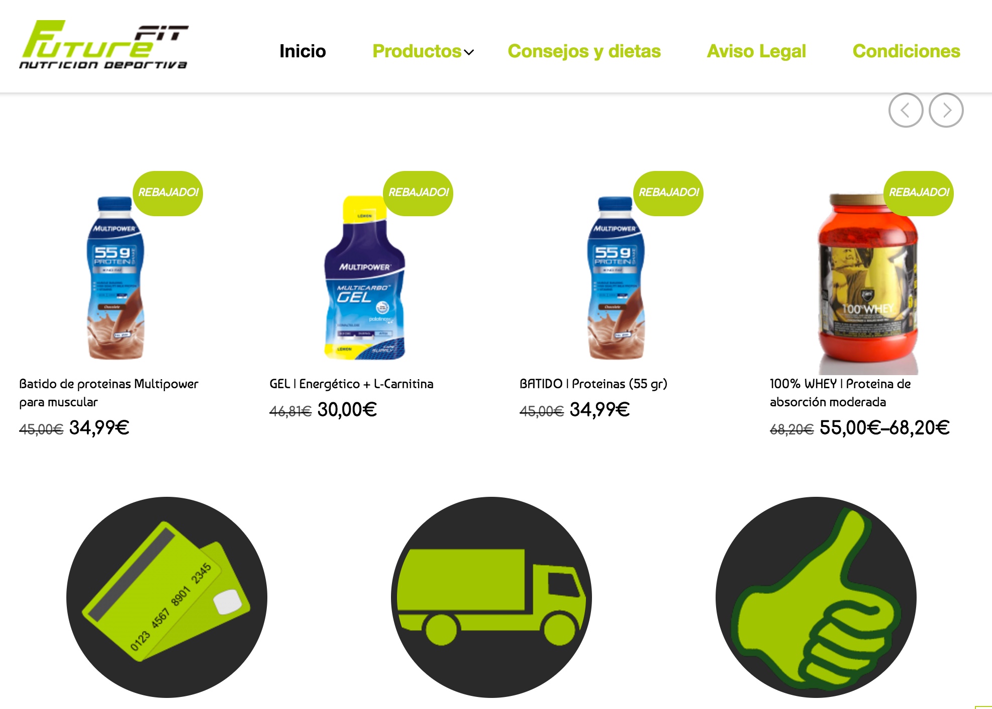 Future Fit es un gimnasio con sede en Torrelodones que quería aumentar su campo de acción con el fin de diversificar sus fuentes de ingresos. En la sede del gimnasio ya vendían este tipo de suplementos, por lo que les ofrecimos crear un ecommerce con los productos que ya vendían en su tienda física. Para ello optamos por un diseño en WordPress con el plugin Woocommerce, con la configuración de envíos, facturas online, distintos impuestos… Y, gracias al estudio de palabras clave previo en todos nuestros trabajos SEO conseguimos posicionar el 70% de los productos entre los 10 primeros puestos de búsqueda orgánica de Google.